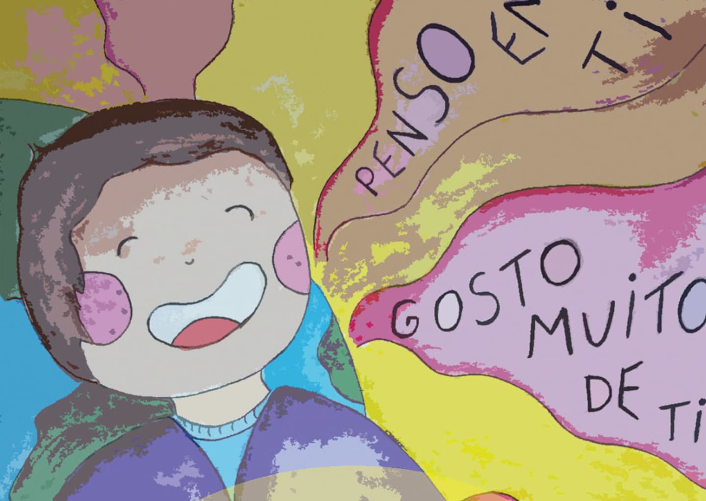 O Sol deu ao menino um conjunto de palavras cor-de-rosa: “por favor”, “muito obroado”, “gosto de voce”, “ amor da minha vida”, “se não se importa”, etc.