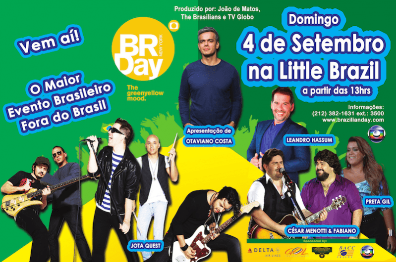 New York, que acontece no dia 4 de setembro, na 6a Avenida, no coração da cidade.Celebrando 20 anos de estrada, Jota Quest retorna ao palco do BR Day NY com grandes sucessos da trajetória da banda, além de hits do novo álbum “Panca-délico”, que mergulha na atmosfera dançante das ‘festas soul’ dos anos 70 e 80, estilo que marcou a chegada do grupo mineiro à cena pop-rock no final dos anos 90. “Vai ser um prazer imenso comemorar esse aniversário tão especial com vocês no BR Day NY 2016. A gente vai relembrar nossos maiores hits para matar a saudade”, celebra o vocalista Rogério Flausino por vídeo produzido exclusivamente para o anúncio da festa.