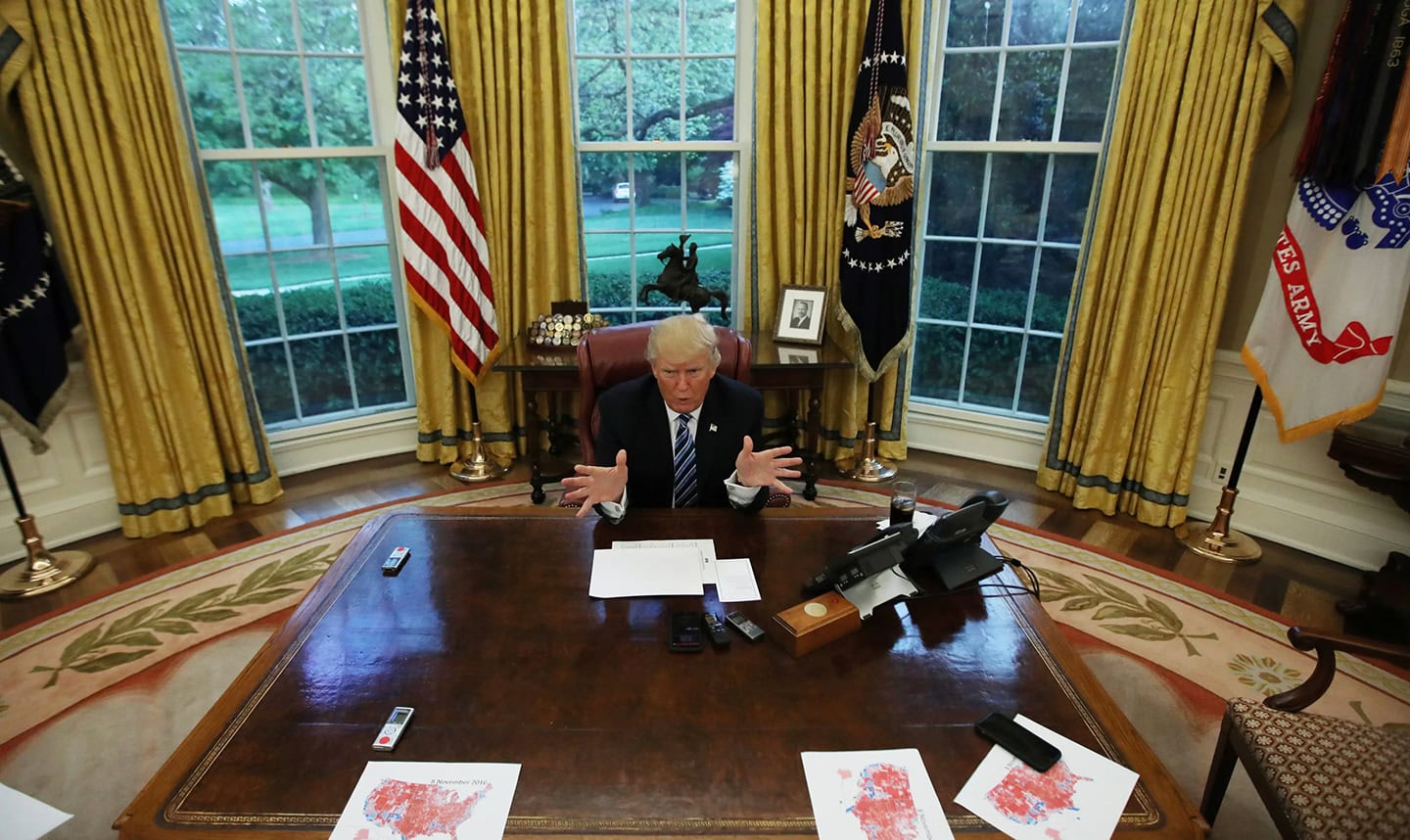 As ordens executivas notáveis emitidas por Trump em seu primeiro mandato incluem a proibição de entrada de cidadãos de alguns países de maioria muçulmana e uma ordem expandindo o arrendamento de águas offshore para exploração de petróleo. Trump emitiu 220 ordens executivas em seu primeiro mandato, mais do que qualquer outro presidente em um único mandato de quatro anos desde Jimmy Carter. O presidente Joe Biden emitiu 155 ordens executivas até segunda-feira (13).