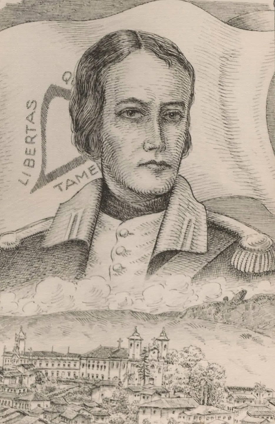 Neste caso, em 1889, foi encomendado ao renomado artista André Delpino (1864-1942) o trabalho de se pintar a imagem oficial de Tiradentes. Então, Delpino desenhou uma imagem de perfil do mártir da Inconfidência, ainda usando o “laço da morte” envolta do seu pescoço.